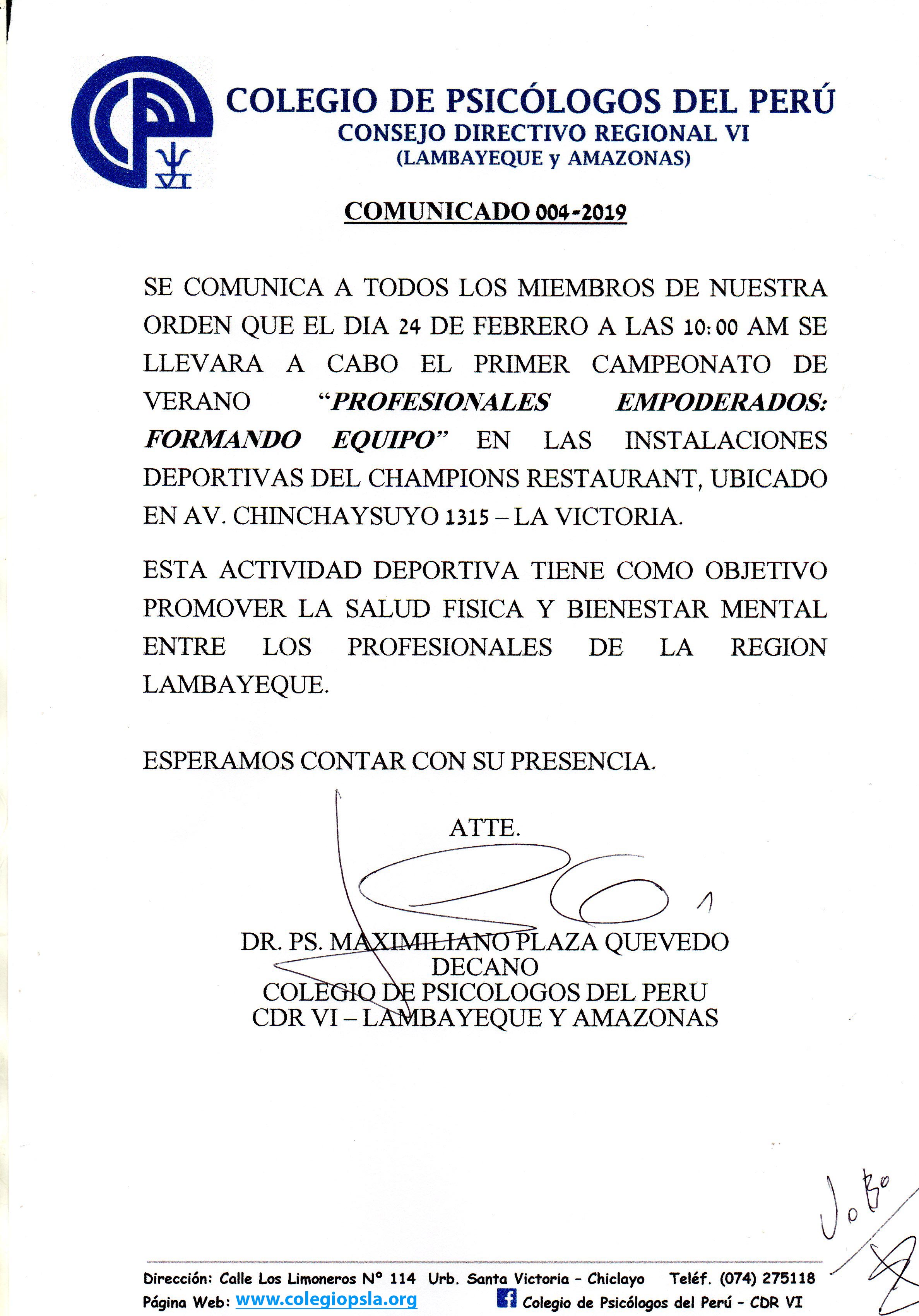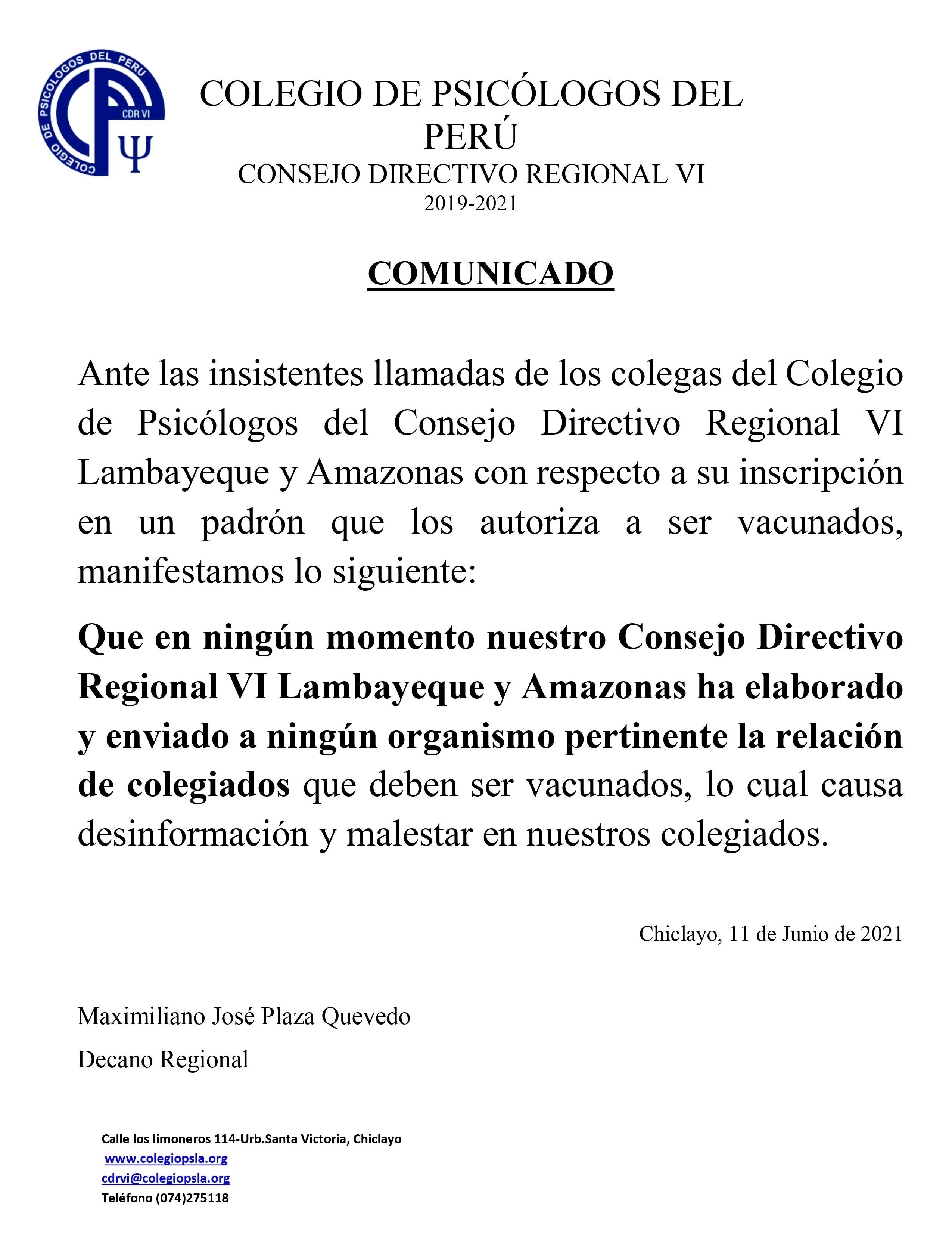 Comunicado CDR-VI Lambayeque y Amazonas